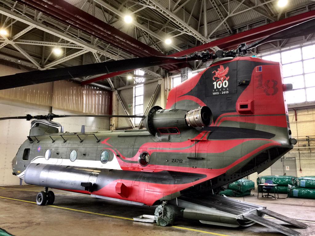 第18(B)直升機中隊Chinook HC4運輸直升機100週年紀念塗裝機.
