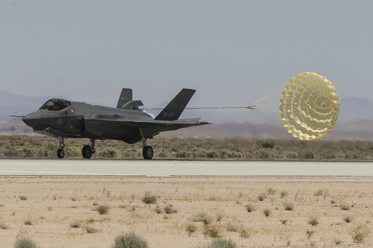 美國Lockheed Martin公司首次進行F-35A AF-2號機釋放阻力傘測試作業,開始第一階段在乾燥和潮濕跑道上進行與第二階段在低溫跑道進行阻力傘釋放測試作業
